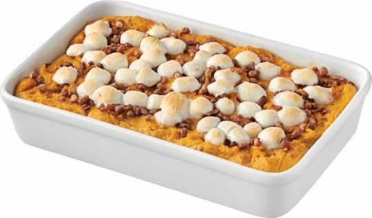<p>Baked potatoes filled with creamy mashed potatoes, topped with bacon, cheddar cheese & scallions.</p>